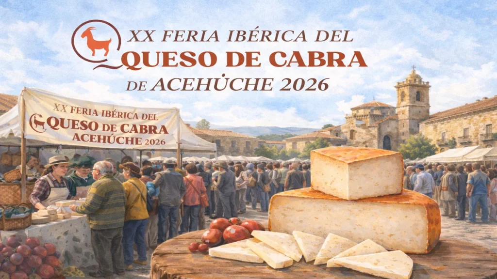 La XX Feria Ibérica del Queso de Cabra se celebra en Acehúche los días 28 y 29 de marzo. Catas, talleres infantiles, música en directo y los mejores quesos ibéricos te esperan en una cita imprescindible en Extremadura.